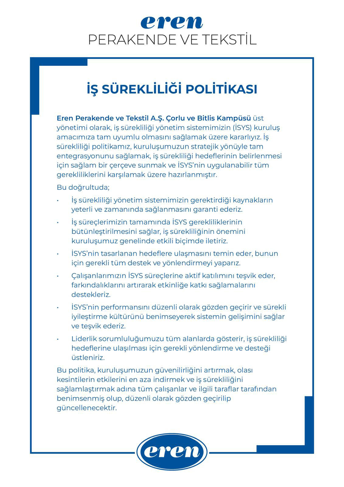 İş Sürekliği Politikası